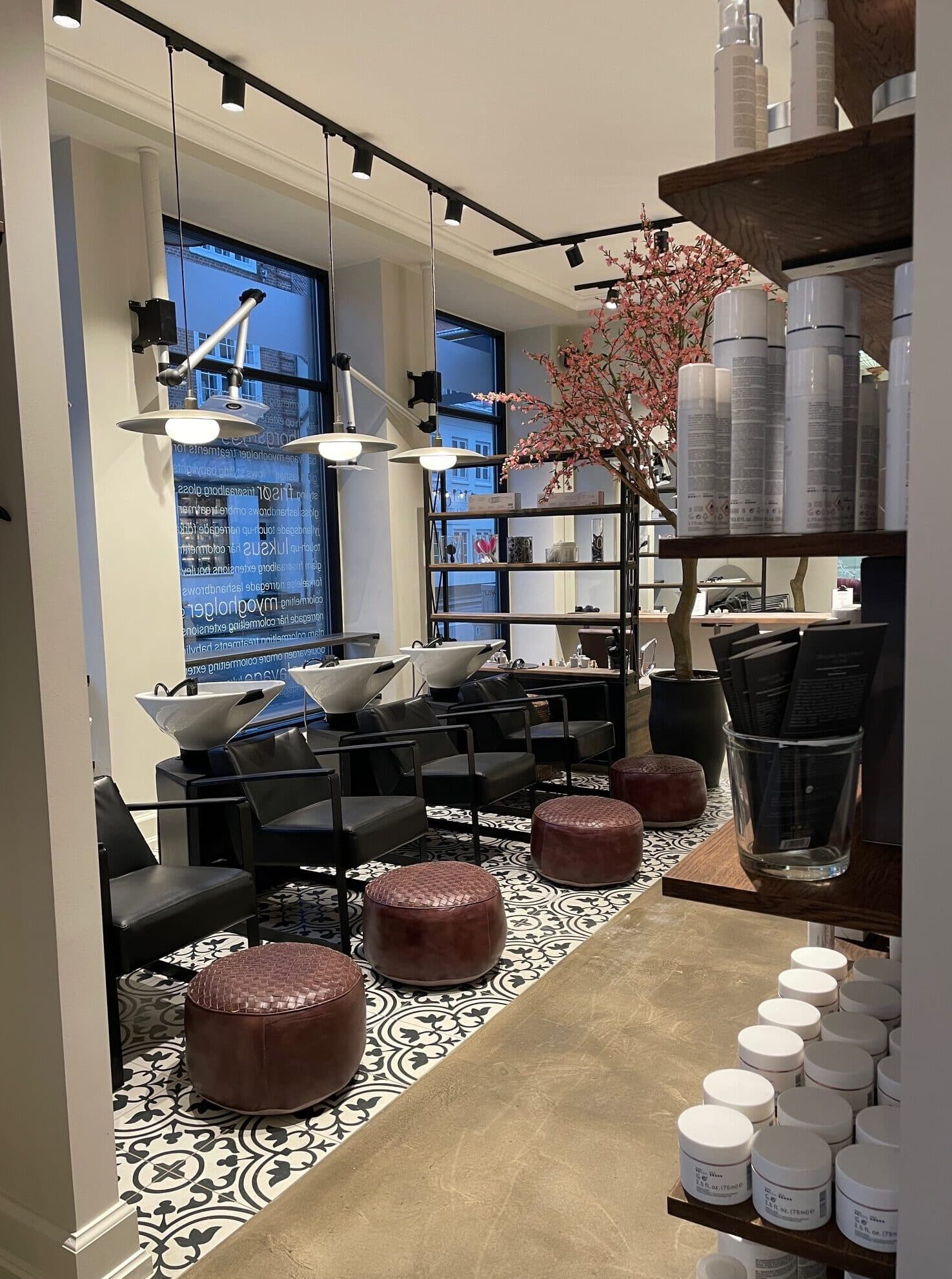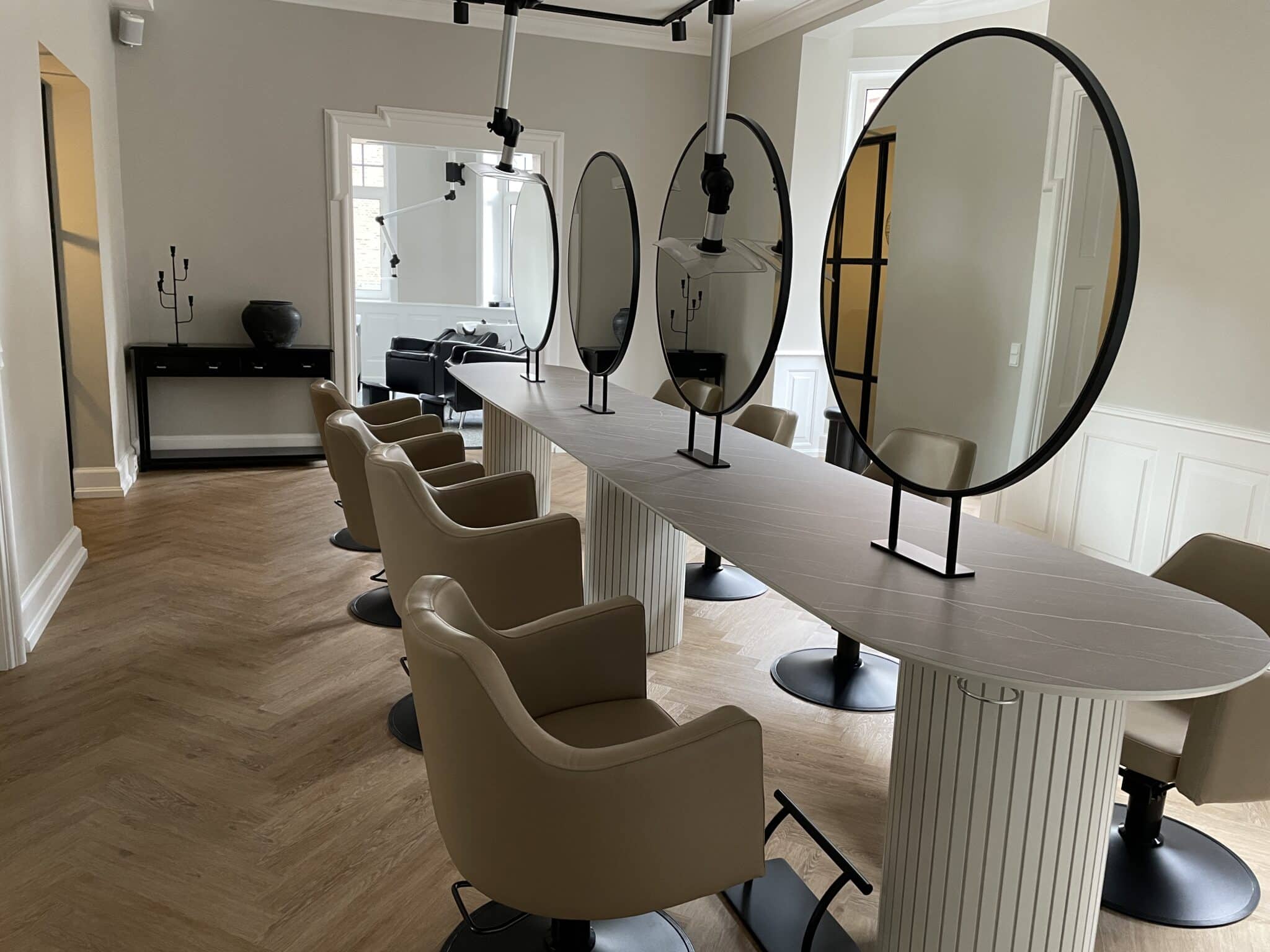 Når det handler om at designe en salon, som skal kunne rumme møbler, produkter, personale og kunder, er atmosfære og funktionalitet afgørende. Derfor skabes den individuelle salon designløsning i tæt samarbejde mellem dig, dit personale og vores arkitekter/designere.